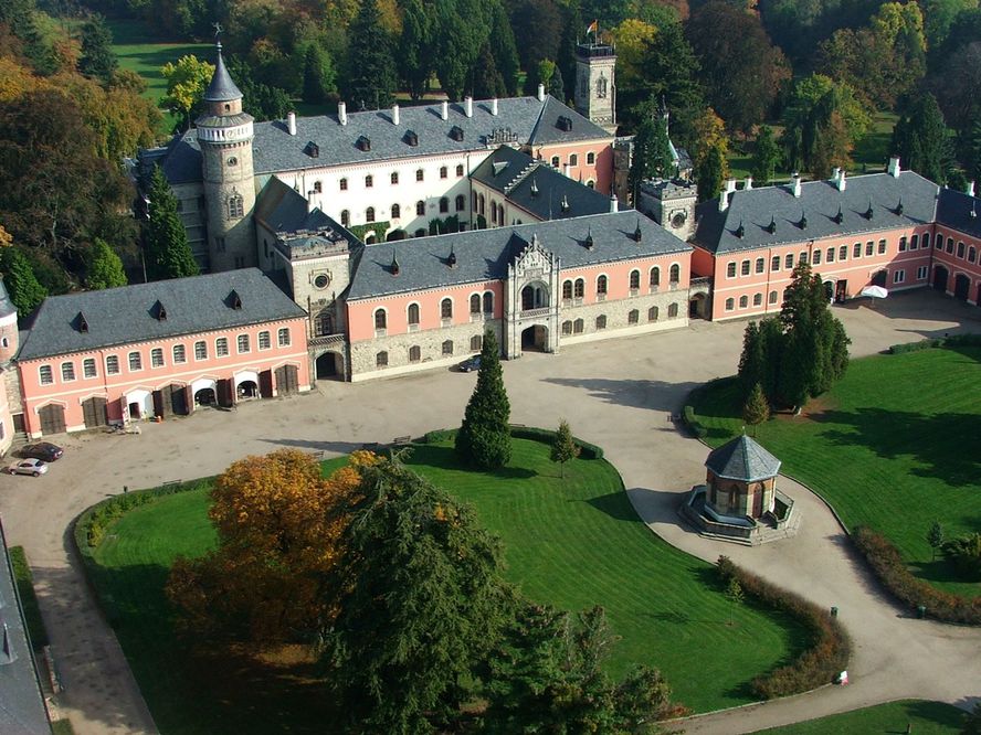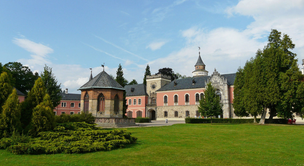 Замок Сихров, расположенный в 100 км от Праги является уникальным примером неоготического дворянского поместья и считается жемчужиной чешского края. При взгляде на него складывается впечатление, что замок взяли прямо из сказки и поместили посреди романтического парка. Интерьер замка полон прекрасных кружев, вырезанных из дерева. Мастера по резьбе, создавшего эту красоту, звали Петр Ушек, и этот интерьер стал делом всей его жизни.
